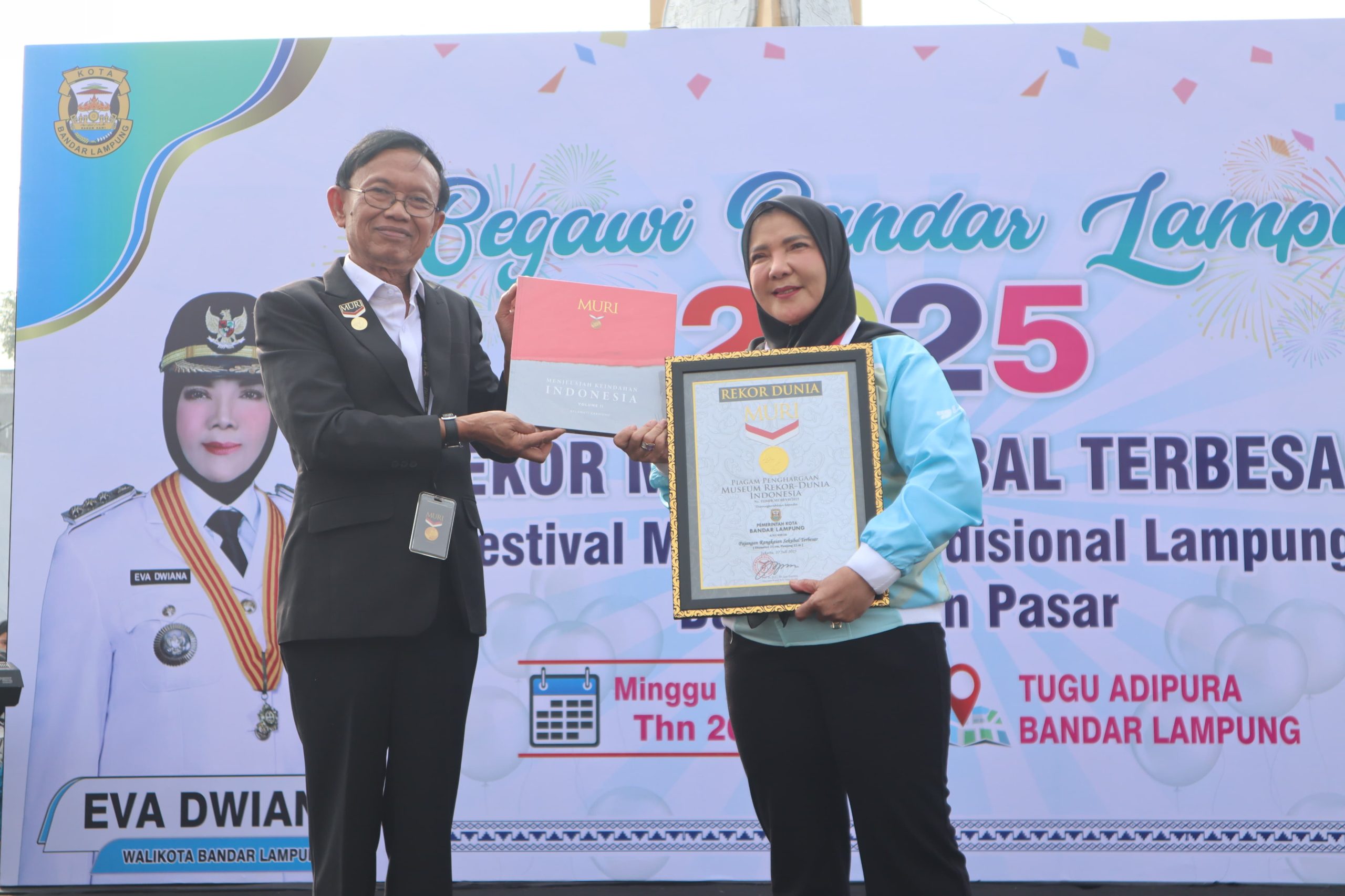 Piagam penghargaan MURI diserahkan langsung oleh Direktur Operasional MURI, Yusuf Ngadri, kepada Wali Kota Bandar Lampung, Hj. Eva Dwiana. Dalam sambutannya, Eva menyebut prestasi ini sebagai bentuk penghormatan terhadap warisan leluhur dan kado spesial bagi masyarakat.