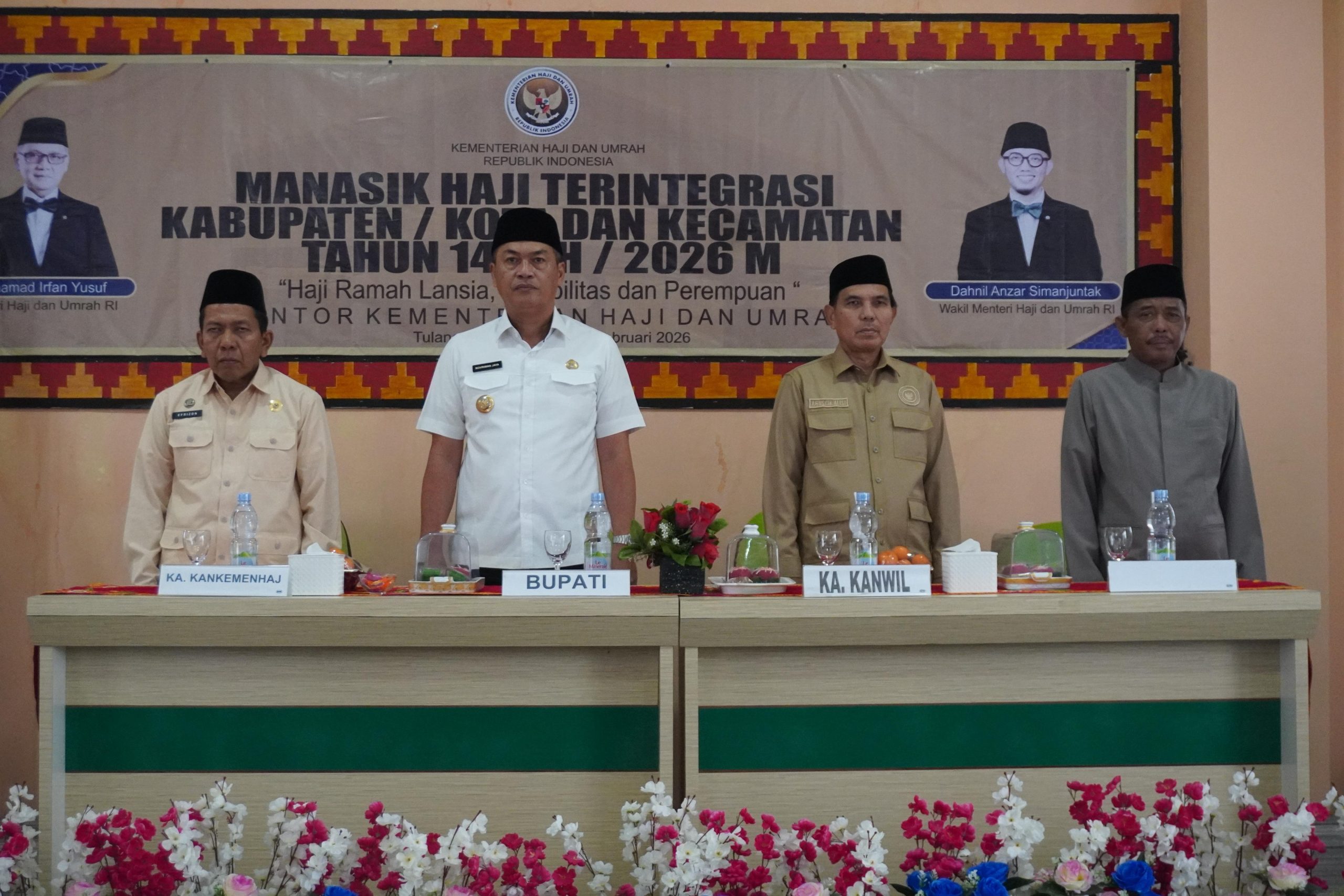 Panaragan,Sinarbangsanews.com – Bupati Tulang Bawang Barat (Tubaba), Ir. Novriwan Jaya, S.P., secara resmi membuka Pelaksanaan Bimbingan Manasik Haji Terintegrasi Kabupaten Tulang Bawang Barat Tahun 1447 H/2026 M. Kegiatan tersebut berlangsung di Aula Gedung PLHUT Kantor Kementerian Haji dan Umrah Kabupaten Tulang Bawang Barat, Rabu (11/02/2026).
