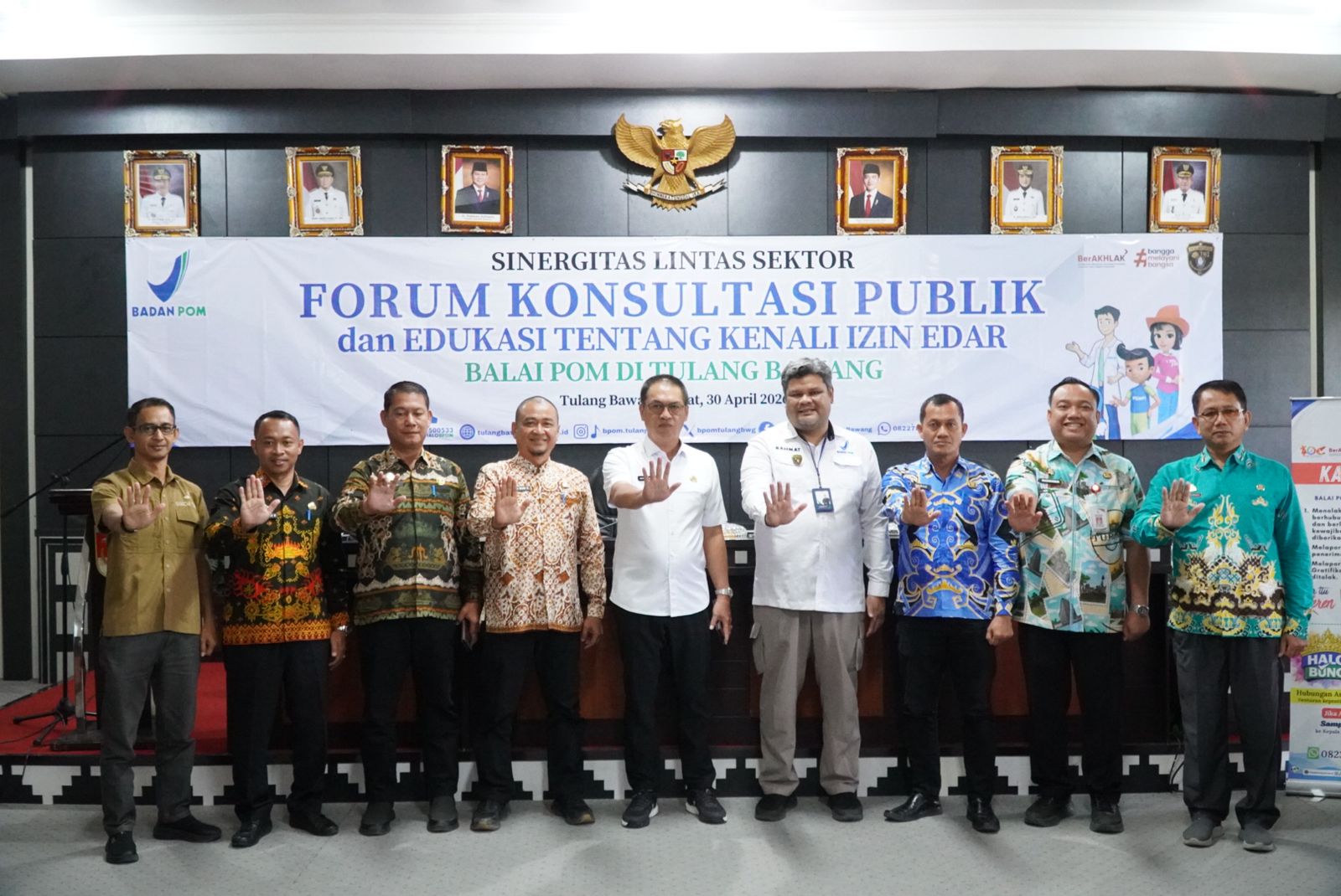 Tubaba,Sinarbangsanews.com — Bupati Tulang Bawang Barat (Tubaba), Ir. Novriwan Jaya, S.P., membuka kegiatan Sinergitas Lintas Sektor Forum Konsultasi Publik dan Edukasi Kenali Izin Edar (KIE) Obat dan Makanan yang diselenggarakan oleh Balai Pengawas Obat dan Makanan (BPOM) Tulang Bawang. Kegiatan tersebut berlangsung di Ruang Rapat Bupati Tubaba, Kamis (30/04/2026).