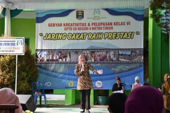 Ketua DPRD : “Anna Morinda Hadiri Gebyar Kreativitas dan Pelepasan Kelas 6 UPTD SD Negeri 4 Metro Timur”.