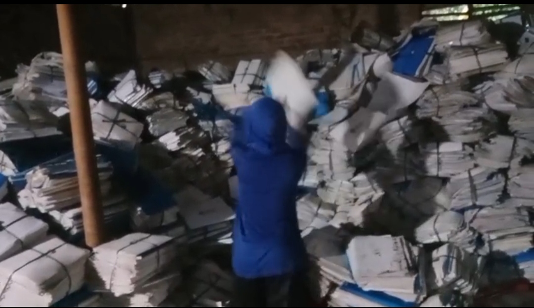 Di lokasi, ditemukan tumpukan limbah non medis berupa kertas dalam jumlah besar yang baru saja diturunkan dari truk dan disimpan di dalam salah satu rumah warga. Selain itu, terlihat pula sisa abu pembakaran yang menggunung dari aktivitas sebelumnya.