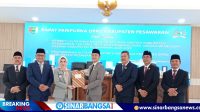 SBNews.com (Mesuji) : DPRD Kabupaten Mesuji setujui Tiga Rancangan Peraturan Daerah (Ranperda). Persetujuan bersama tersebut ditandai dengan penandatanganan nota kesepakatan antara Ketua DPRD Mesuji Elfianah dan Bupati Mesuji Saply TH dalam rapat paripurna yang digelar di Gedung DPRD Kabupaten Mesuji, Wiralaga Mulya, Kamis (29/04/2021).