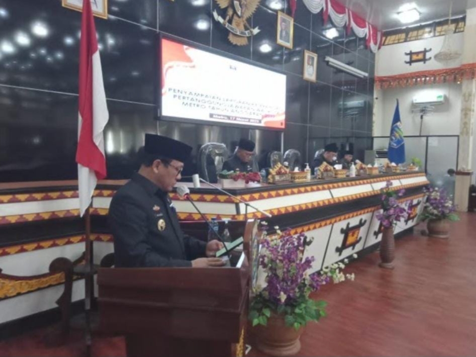 SinarbangsaNews.com, Metro — Dewan Perwakilan Rakyat Daerah (DPRD) Kota Metro menggelar rapat paripurna tentang penyampaian Laporan Keterangan Pertanggung Jawaban (LKPJ) Wali kota Metro tahun 2022.