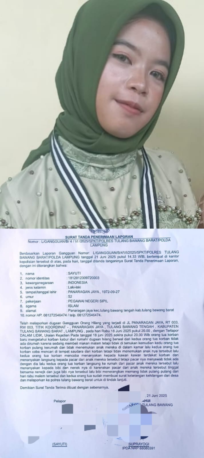 “Kami mohon bantuan masyarakat. Siapa pun yang mengetahui keberadaan anak kami, harap segera menghubungi kami di nomor 0812-7254-6474 atau melapor ke Polres Tubaba,” tegasnya(P/ Ht / Eka p)