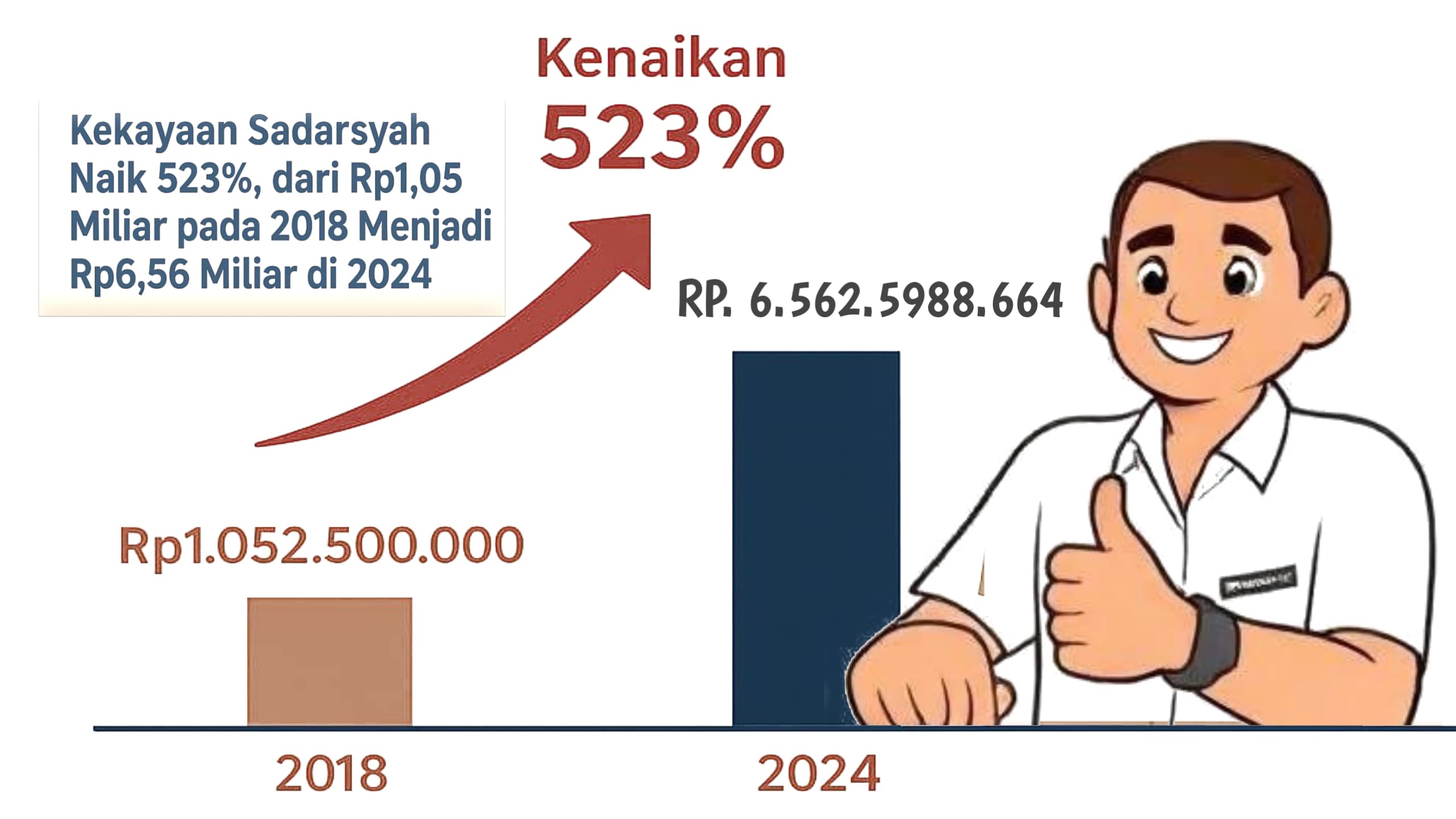 Kekayaan Bersih: Rp6.562.528.664 (naik Rp5.510.028.664 atau 523%)
