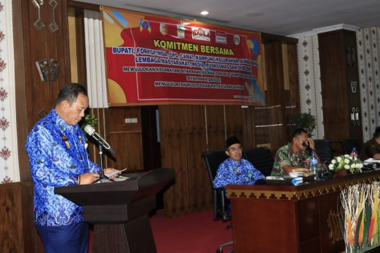 Acara tersebut diteruskan dengan penanda tanganan komitmen bersama yang di lakukan oleh Sekda , unsur Kajari , Kodim 0426 , Lanud Pangeran M Bunyamin , Forum Camat , Uspika , dll.(Alek/Adv)