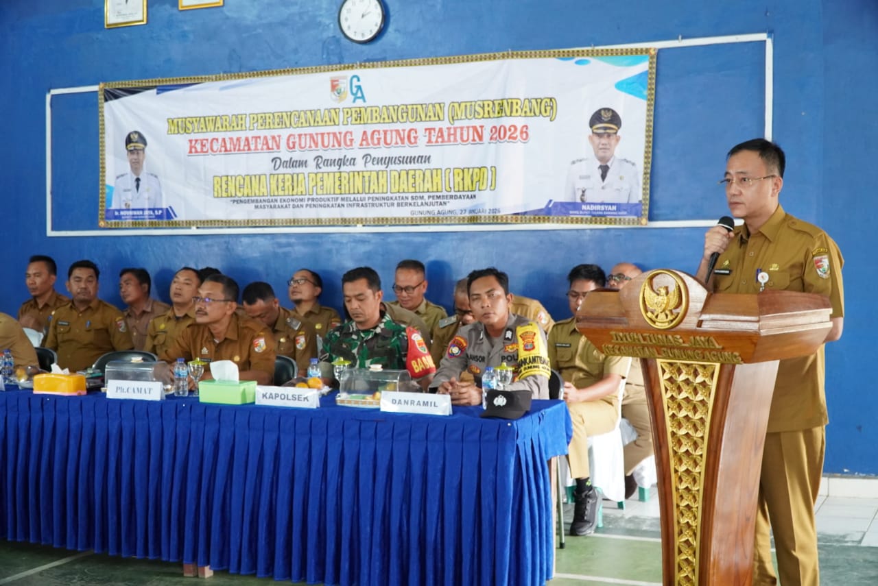 TUBABA, Sinarbangsanews.com — Pemerintah Kabupaten Tulang Bawang Barat (Tubaba) terus memperkuat sinergi pembangunan melalui pelaksanaan Musyawarah Perencanaan Pembangunan (Musrenbang) Rencana Kerja Pemerintah Daerah (RKPD) Kecamatan Tahun 2026. Kegiatan ini dilaksanakan di dua wilayah, yakni Kecamatan Way Kenanga dan Kecamatan Gunung Agung, Selasa (27/01/2026).