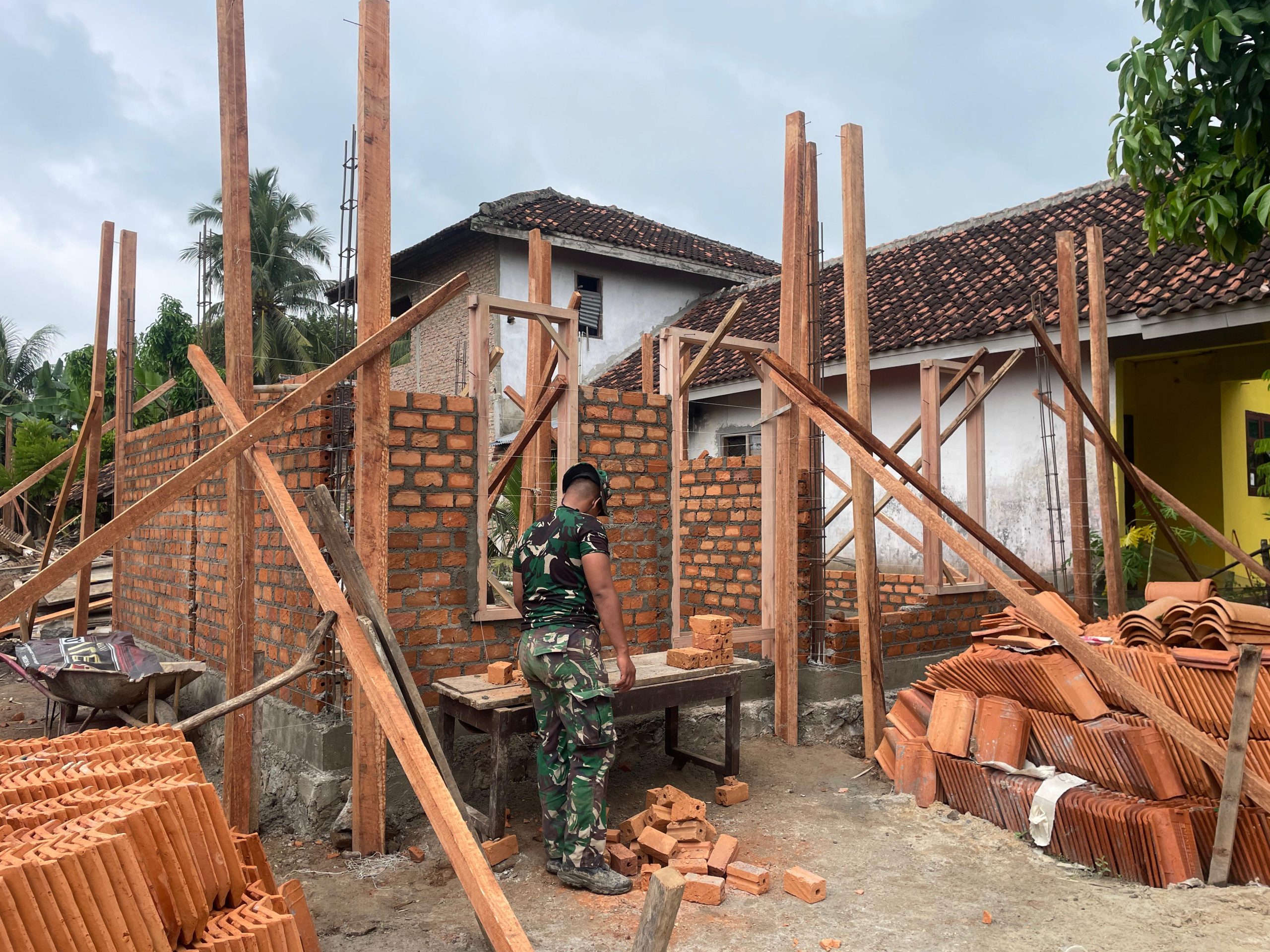 Di beberapa unit lainnya, pemasangan batu bata mulai dilakukan sebagai pembentukan struktur dinding rumah. Perubahan fisik bangunan mulai terlihat, dari kondisi sebelumnya yang kurang layak menjadi hunian yang lebih kokoh dan representatif untuk ditempati.