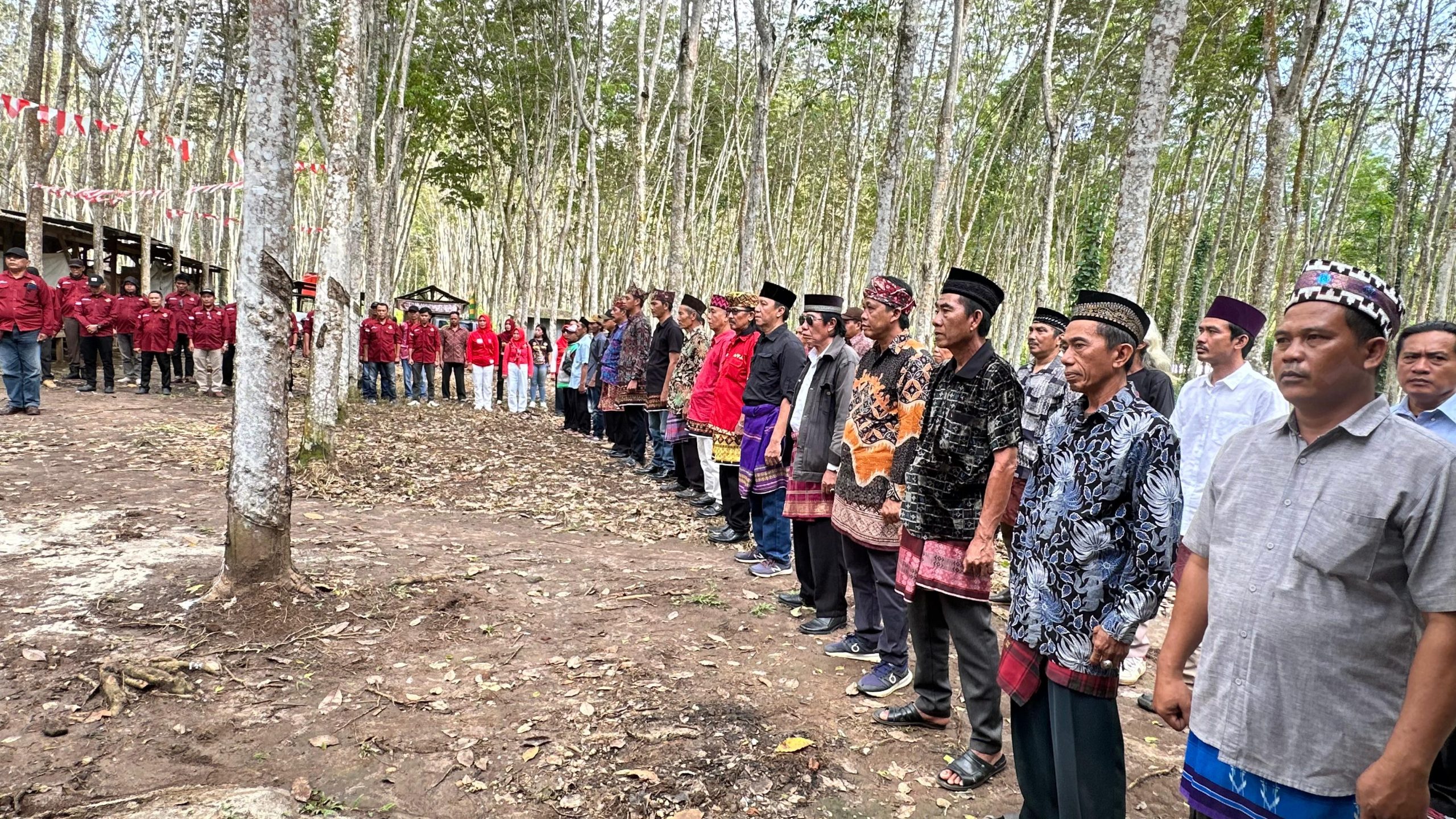 “Hari ini kita berdiri di tanah perjuangan. Perjuangan ini bukan pribadi, melainkan perjuangan bersama demi masa depan anak cucu kita,” tegas Saprudin.