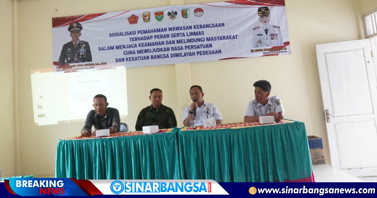 Pesawaran, Sinarbangsanews.com — Program Tentara Manunggal Membangun Desa (TMMD) yang digelar Kodim 0421/Lampung Selatan menghadirkan kegiatan nonfisik berupa sosialisasi Wawasan Kebangsaan (Wasbang) bagi anggota Perlindungan Masyarakat (Linmas) dan warga desa di wilayah sasaran TMMD Kabupaten Pesawaran, Rabu (18/2/2026).