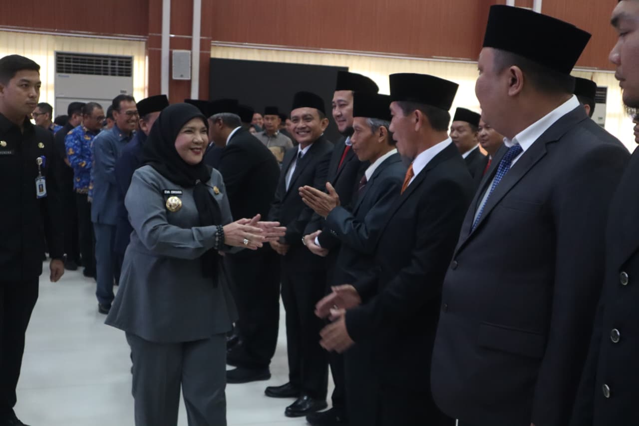 Bandar Lampung, SinarbangsaNews.com – Walikota Bandar Lampung Hj. Eva Dwiana kembali melakukan rotasi dan pelantikan pejabat di lingkungan Pemerintah Kota (Pemkot) Bandar Lampung. Kegiatan tersebut berlangsung di Aula Semergou pada Jumat (17/10/2025).